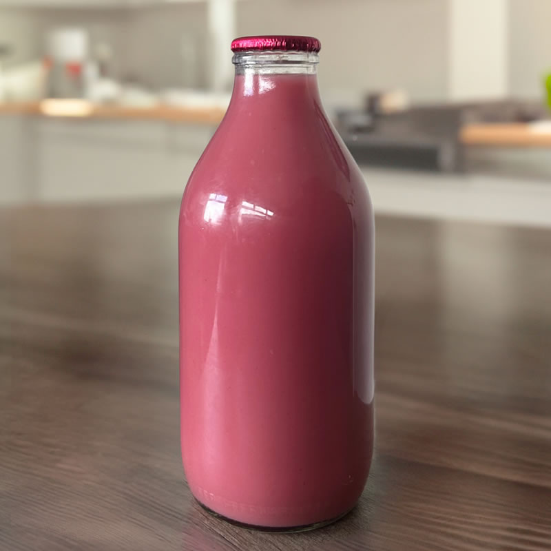 A creamy, fruity blend of strawberries and banana in a 1-pint glass bottle. Smooth, sweet, and satisfying – perfect for a quick breakfast or a refreshing snack. Shake well and enjoy chilled.